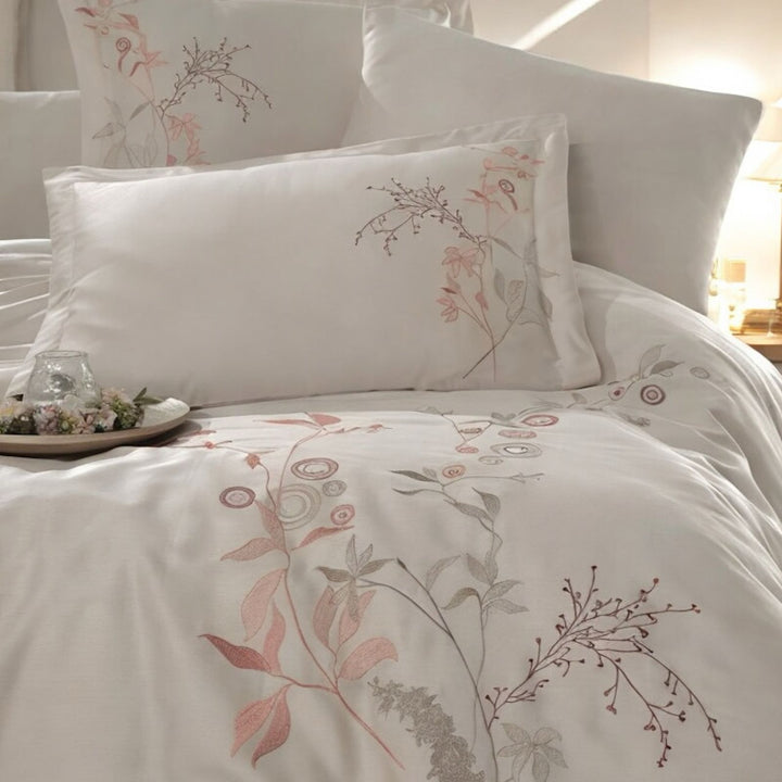 Okya Dreamoria Warm Ivory 100% Cotton Satin Bed Linen Set 6 Pcs + Gift Turkish Coffee Set