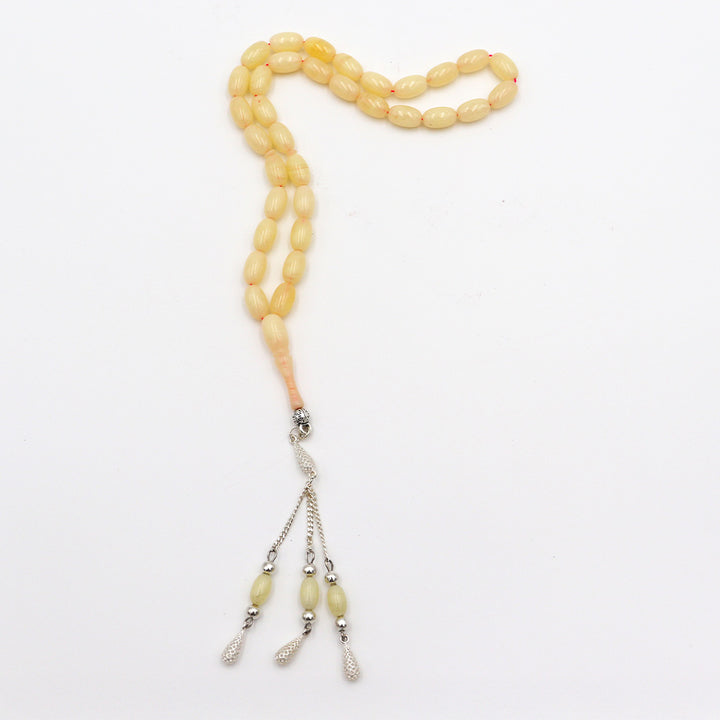 White Pressed Amber Misbaha With 33 Beads M201
