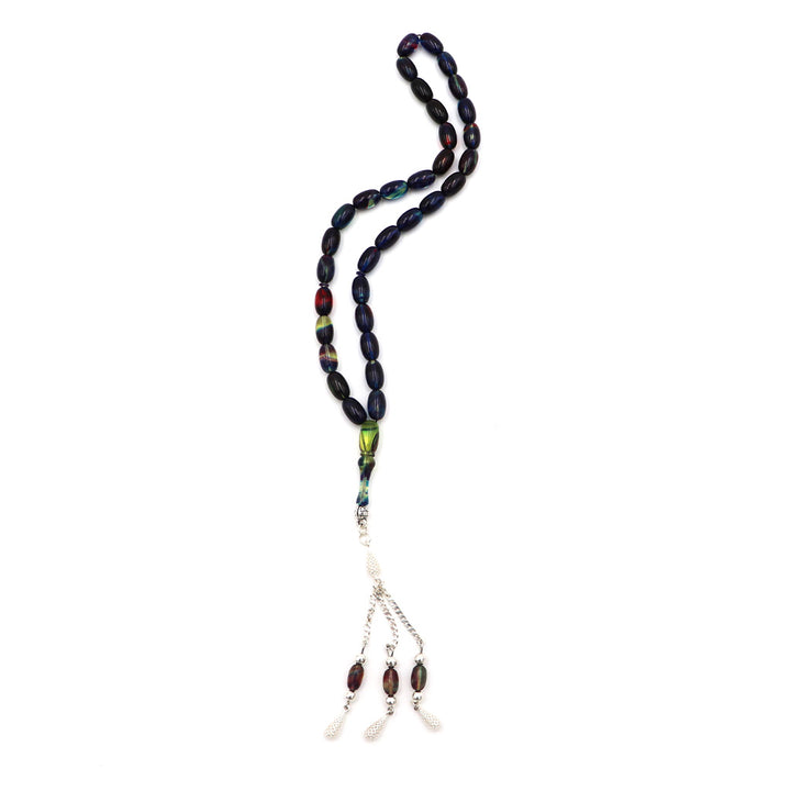 Blue Brown Pressed Amber Misbah With 33 Beads M207