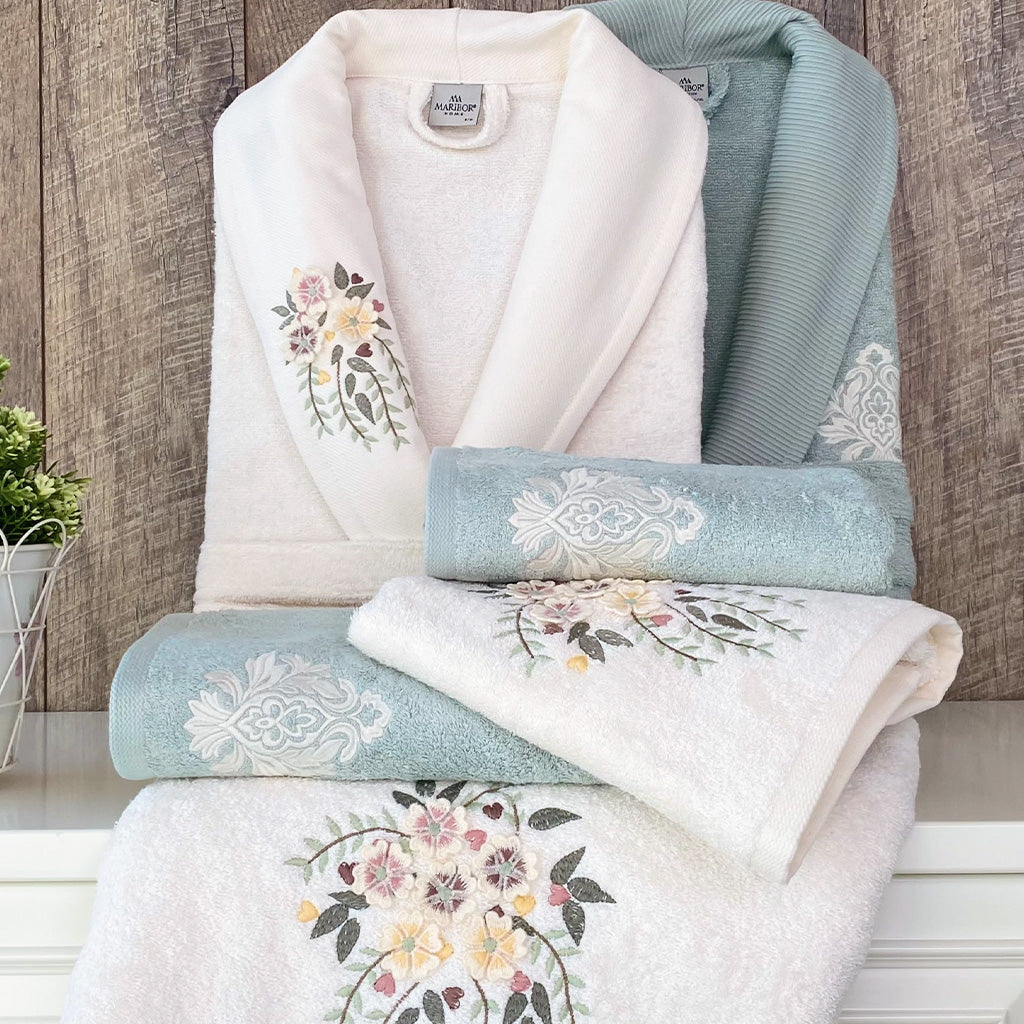Harmova Bathrobe Set Cream - Ocean 70% Bamboo 30% Cotton 6 Pcs