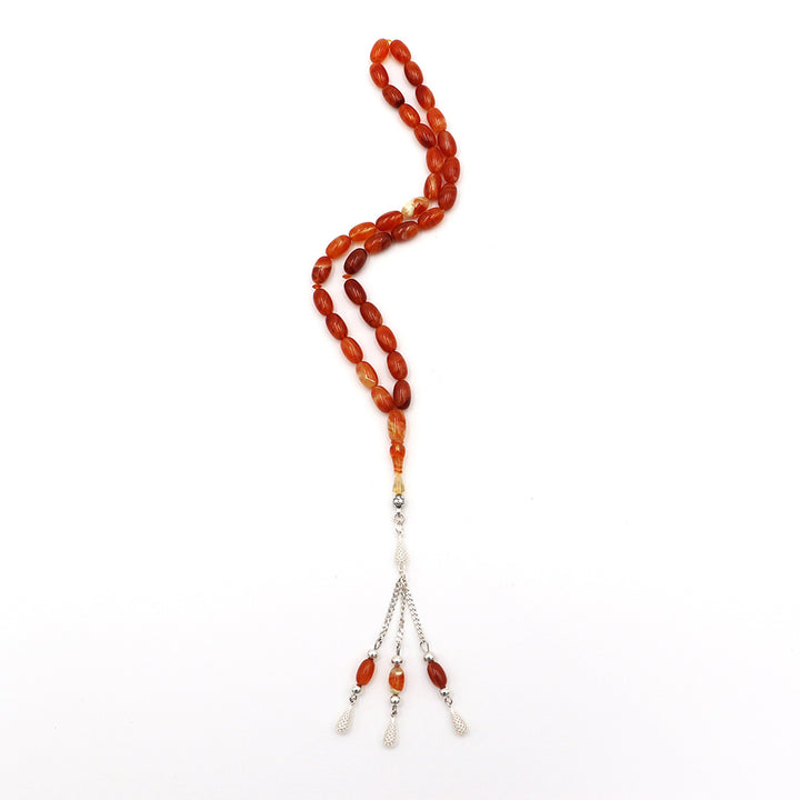 Light Orange Pressed Amber Misbah With 33 Beads m205