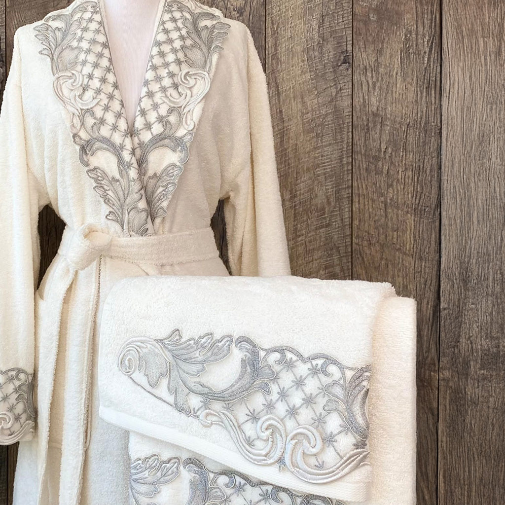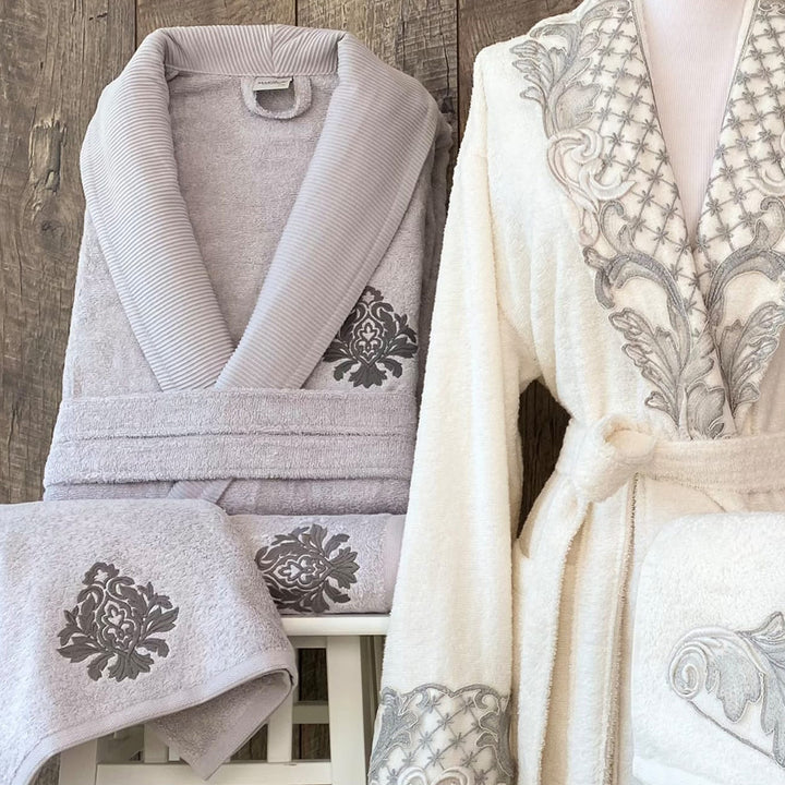 Marisca Bathrobe Set Cream - Gray 70% Bamboo 30% Cotton 6 Pcs