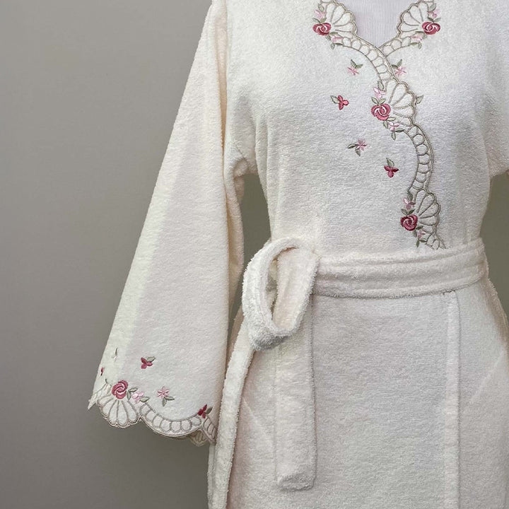 Meralis Bathrobe Kimono Cream 70% Bamboo 30% Cotton S-M