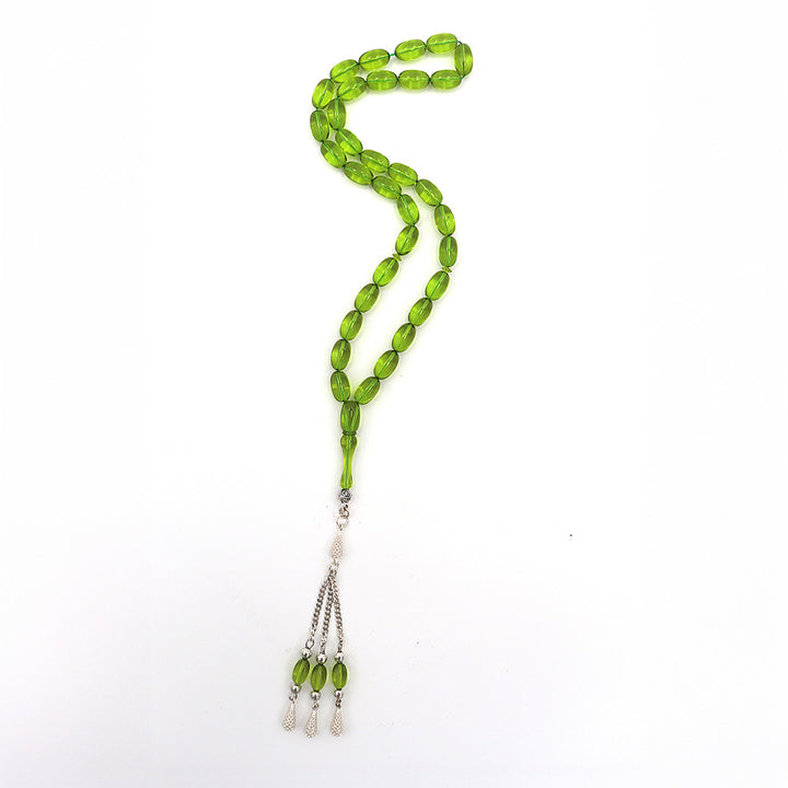 Mint Green Pressed Amber Misbah With 33 Beads M221