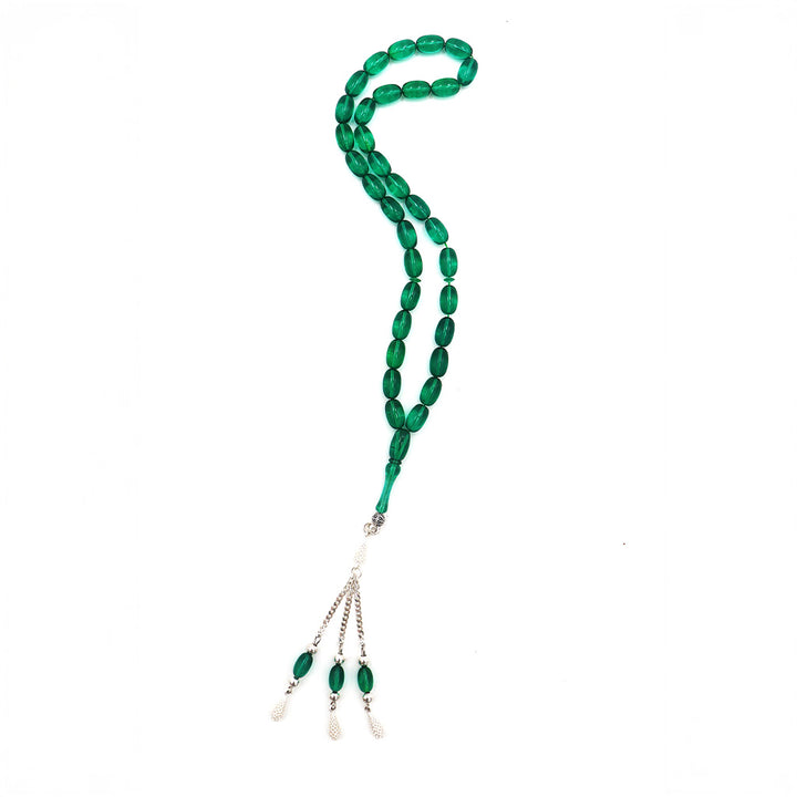 Pale Green Pressed Amber Misbah With 33 Beads M224