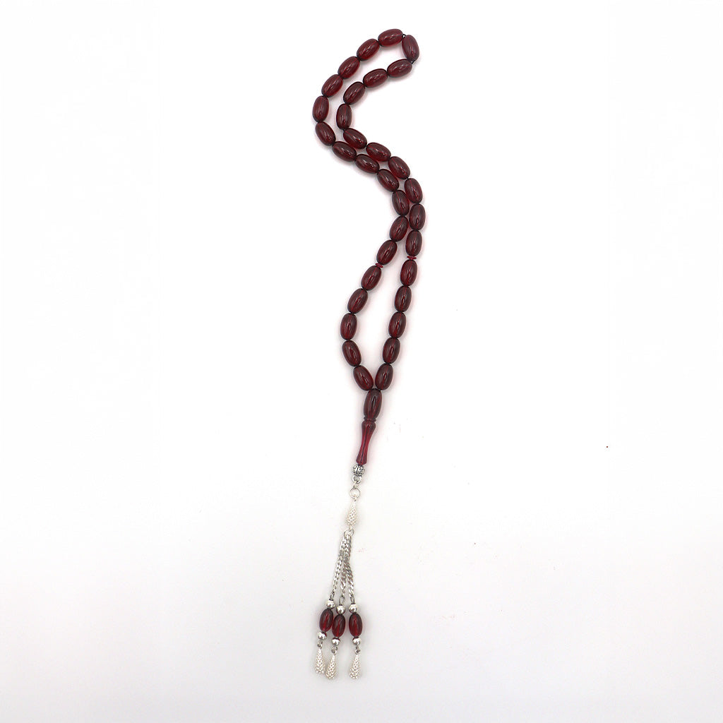 Rose Red Pressed Amber Misbah With 33 Beads m220
