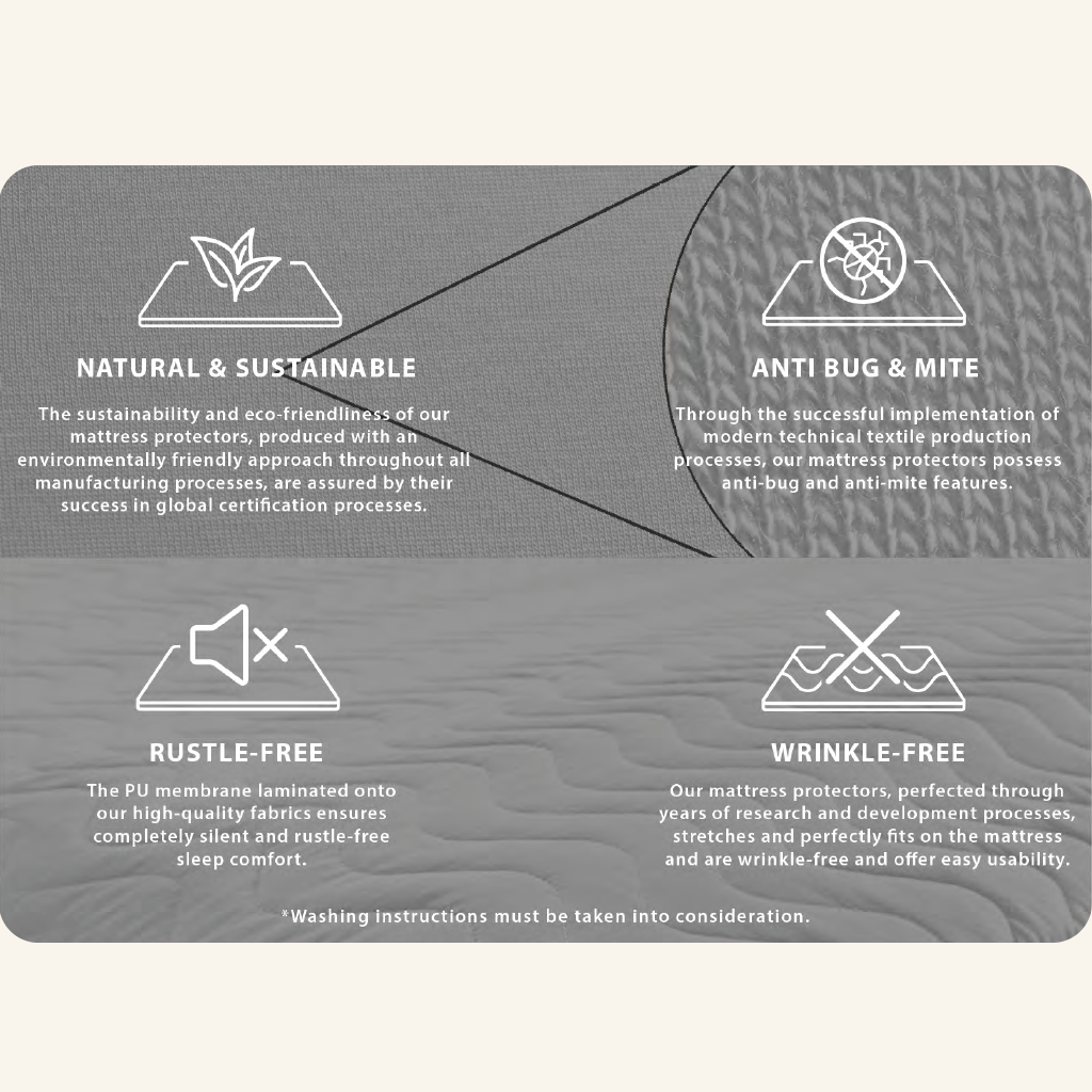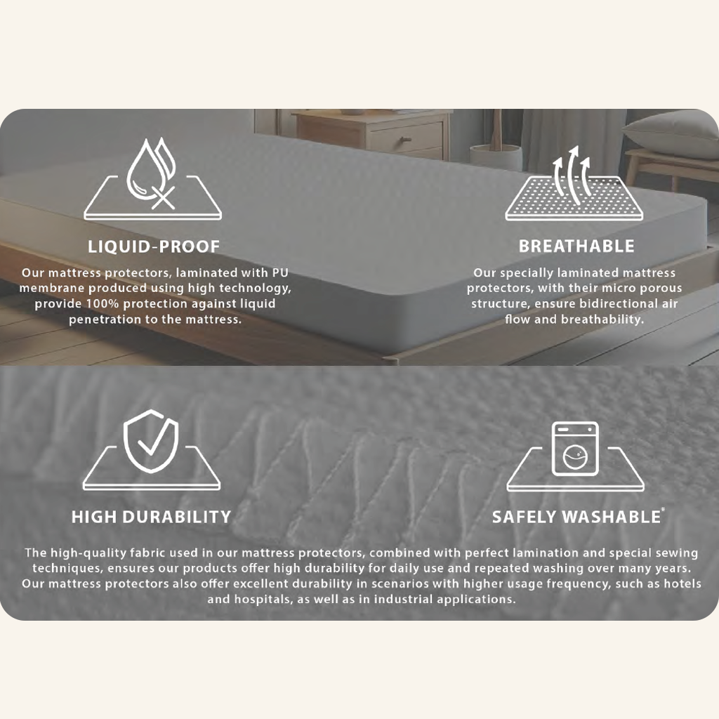 Верхние поверхности PROTECTORS из 100% хлопчатобумажной ткани. Он пришит со всех четырех сторон. Он полностью обхватывает бедро эластичным бортиком.